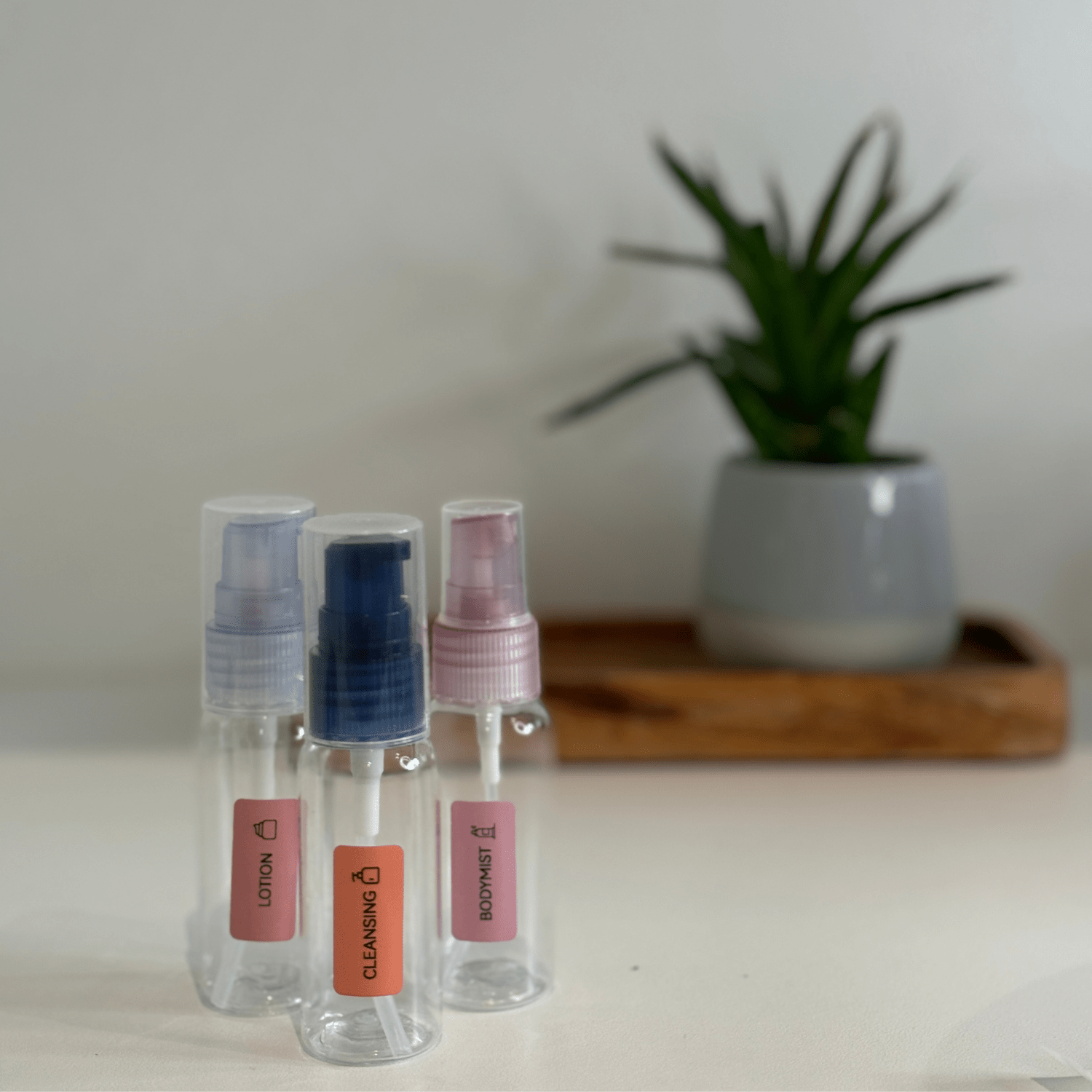 • Stilrena etiketter i mjuk peach-färg som ger märkningen ett varmt, modernt och harmoniskt uttryck.